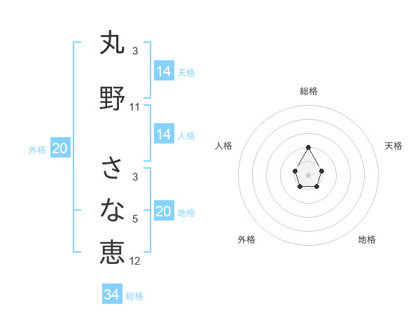 丸野 さな恵さんを姓名の画数から五運を鑑定