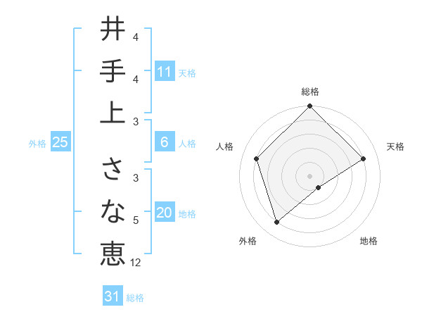 井手上 さな恵さんの総格は31画の5点!
