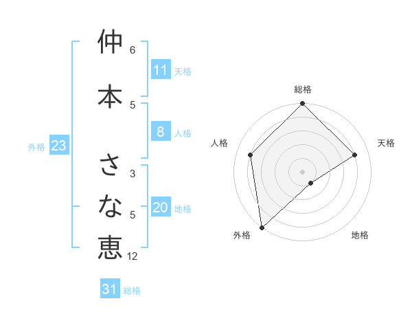仲本 さな恵さんを姓名の画数から五運を鑑定