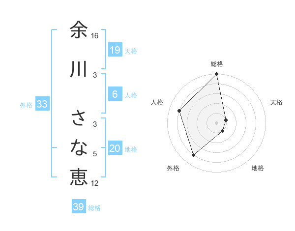 余川 さな恵さんを姓名の画数から五運を鑑定