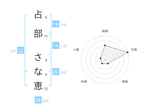 占部 さな恵さんを姓名の画数から五運を鑑定