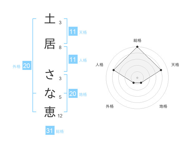 土居 さな恵さんの総格は31画の5点!