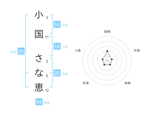 小国 さな恵さんを姓名の画数から五運を鑑定