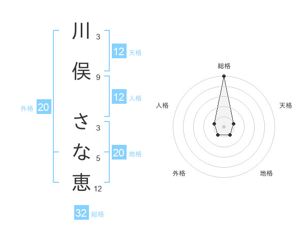 川俣 さな恵さんの総格は32画の5点!