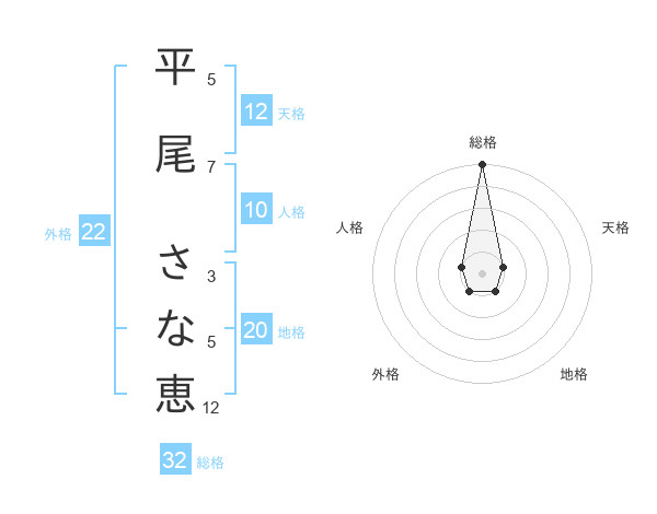 平尾 さな恵さんの天格は12画の1点!