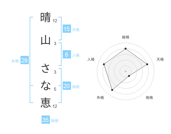 晴山 さな恵さんの総格は35画の4点