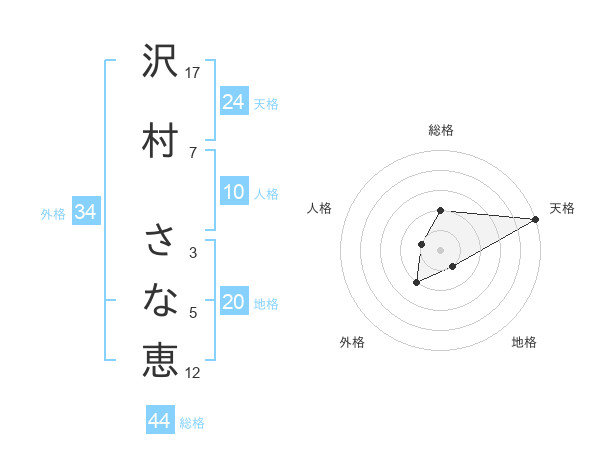 沢村 さな恵さんの天格は24画の5点!