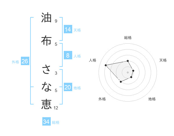 油布 さな恵さんを姓名の画数から五運を鑑定