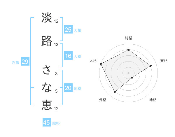 淡路 さな恵さんを姓名の画数から五運を鑑定