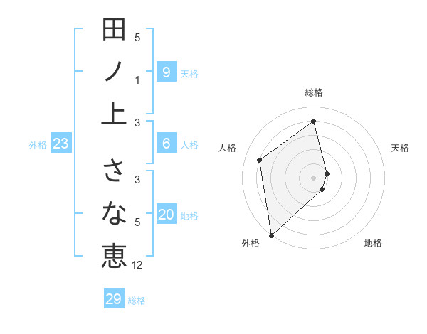 田ノ上 さな恵さんを姓名の画数から五運を鑑定