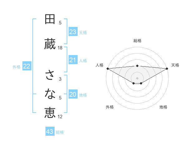 田蔵 さな恵さんの天格は23画の5点!