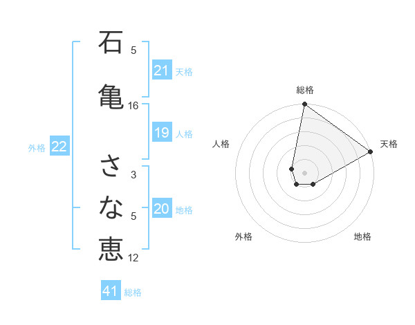 石亀 さな恵さんを姓名の画数から五運を鑑定