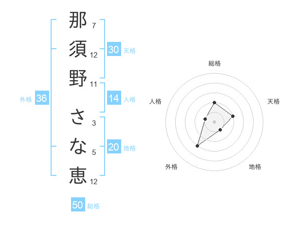 那須野 さな恵さんを姓名の画数から五運を鑑定