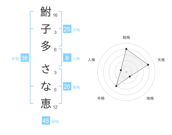 鮒子多 さな恵さんの総格は45画の4点!