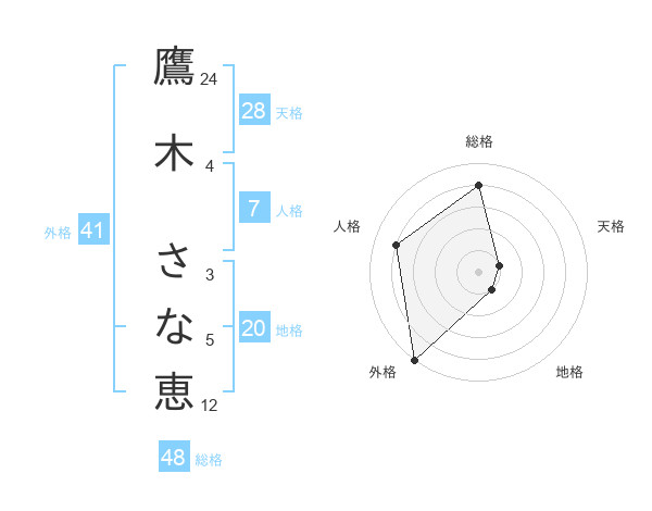 鷹木 さな恵さんを姓名の画数から五運を鑑定