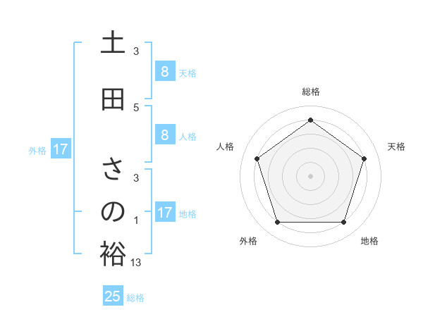 土田 さの裕さんを姓名の画数から五運を鑑定