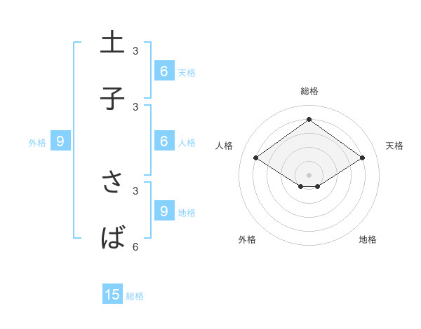 土子 さばさんの総格は15画の4点!