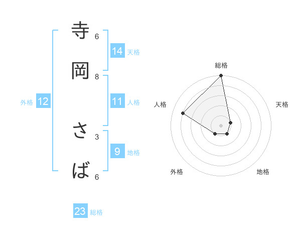 寺岡 さばさんの総格は23画の5点!