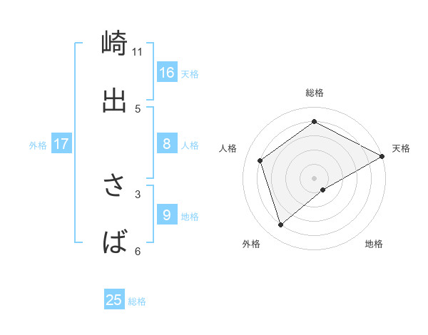 崎出 さばさんの天格は16画の5点!