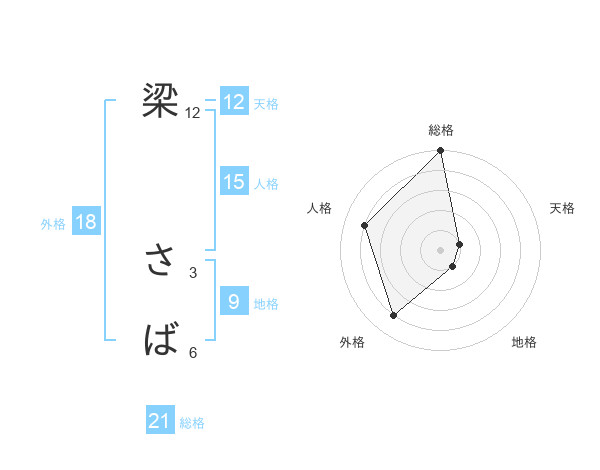 梁 さばさんの総格は21画の5点!
