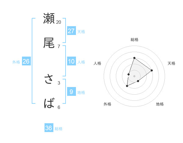 瀬尾 さばさんを姓名の画数から五運を鑑定