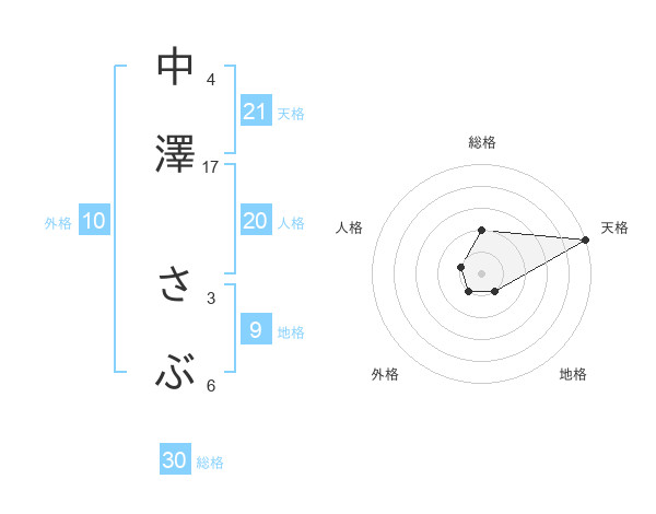 中澤 さぶさんの天格は21画の5点!