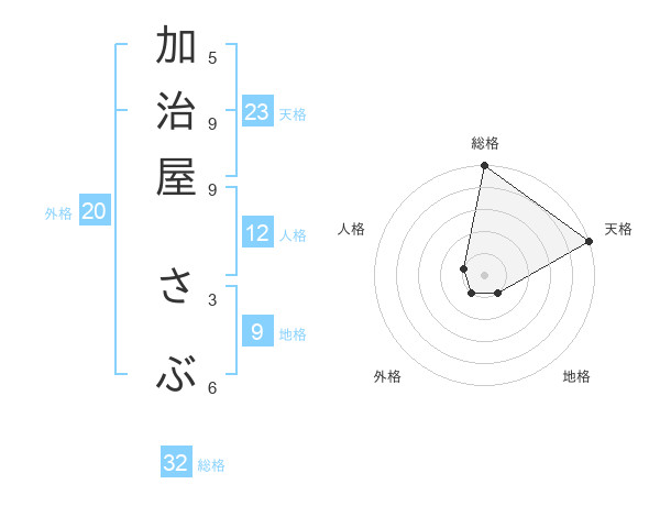 加治屋 さぶさんを姓名の画数から五運を鑑定