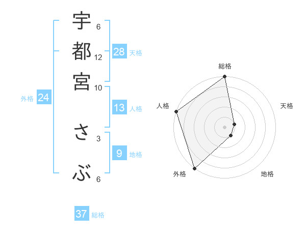 宇都宮 さぶさんを姓名の画数から五運を鑑定