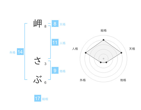 岬 さぶさんの天格は8画の4点!