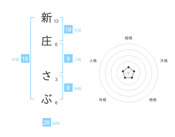 新庄 さぶさんの総格は28画の1点!