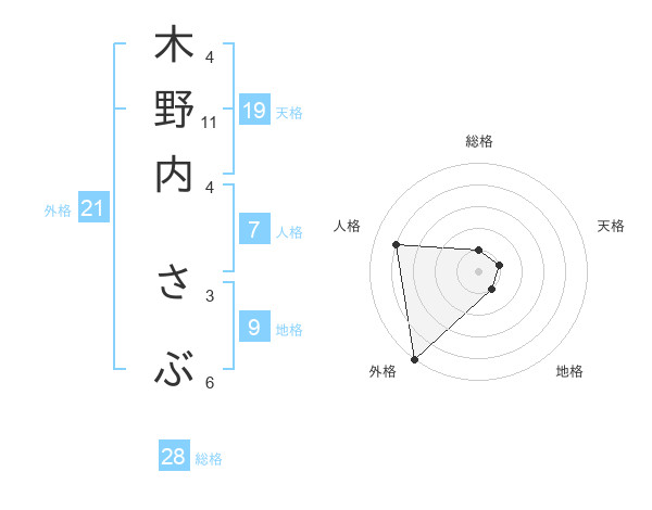 木野内 さぶさんを姓名の画数から五運を鑑定