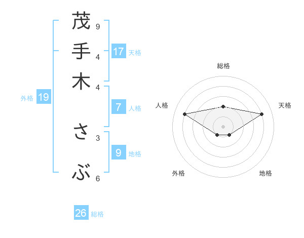 茂手木 さぶさんを姓名の画数から五運を鑑定