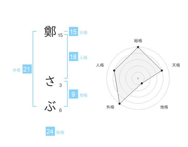 鄭 さぶさんの天格は15画の4点!