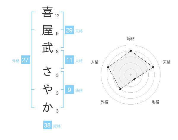 喜屋武 さやかさんの総格は38画の4点!