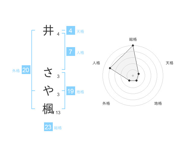 井 さや楓さんの総格は23画の5点!