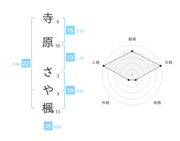 寺原 さや楓さんの総格は35画の4点!