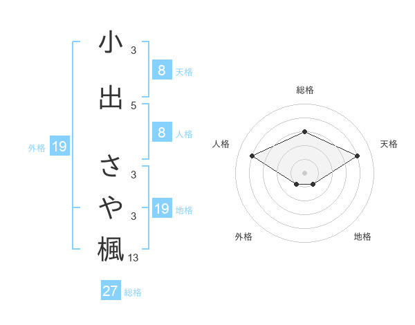 小出 さや楓さんを姓名の画数から五運を鑑定