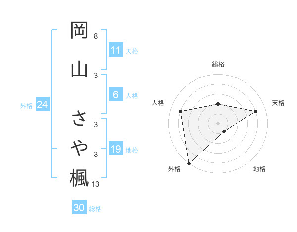 岡山 さや楓さんを姓名の画数から五運を鑑定