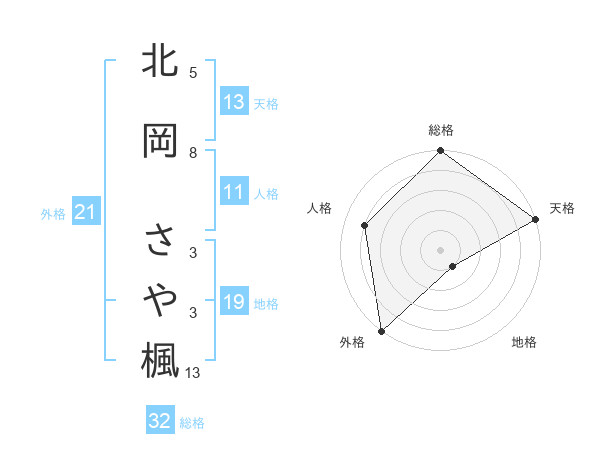 北岡 さや楓さんを姓名の画数から五運を鑑定