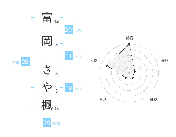 富岡 さや楓さんを姓名の画数から五運を鑑定