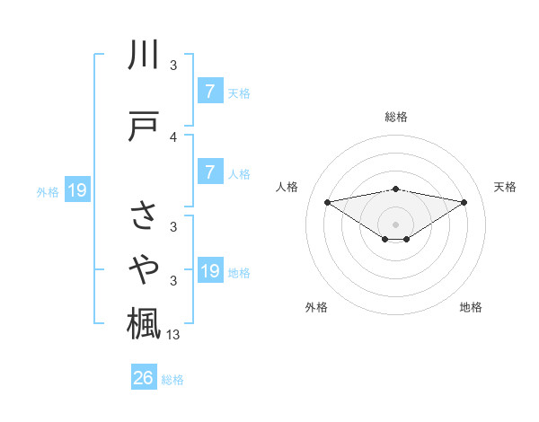 川戸 さや楓さんを姓名の画数から五運を鑑定