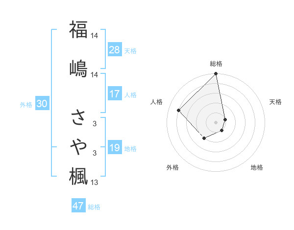 福嶋 さや楓さんを姓名の画数から五運を鑑定