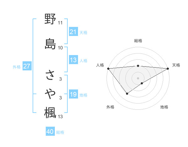 野島 さや楓さんを姓名の画数から五運を鑑定