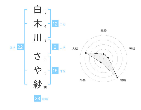 白木川 さや紗さんを姓名の画数から五運を鑑定