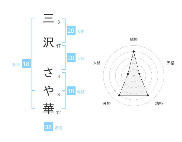 三沢 さや華さんの総格は38画の4点!