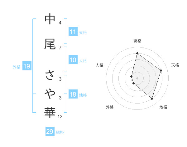 中尾 さや華さんを姓名の画数から五運を鑑定