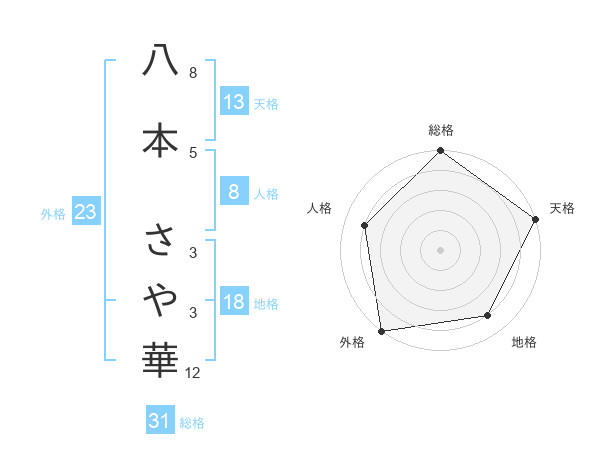 八本 さや華さんの総格は31画の5点!