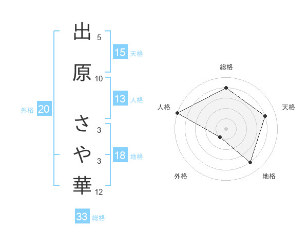 出原 さや華さんの外格は20画の1点!