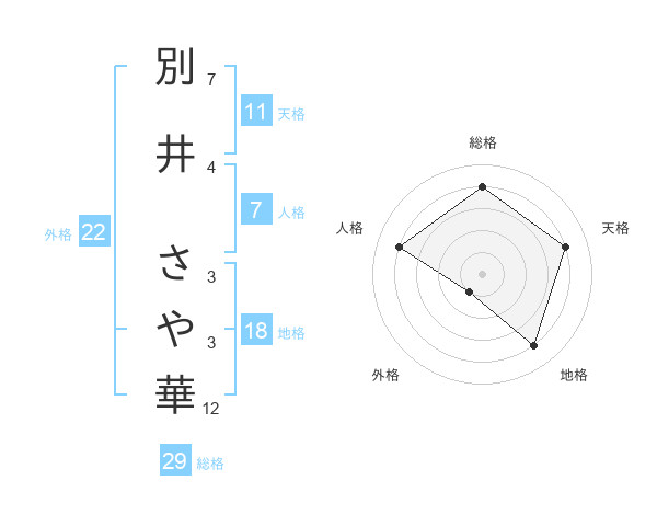 別井 さや華さんの総格は29画の4点!
