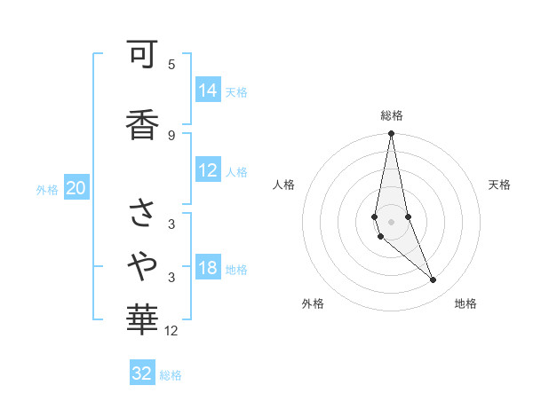 可香 さや華さんの総格は32画の5点!